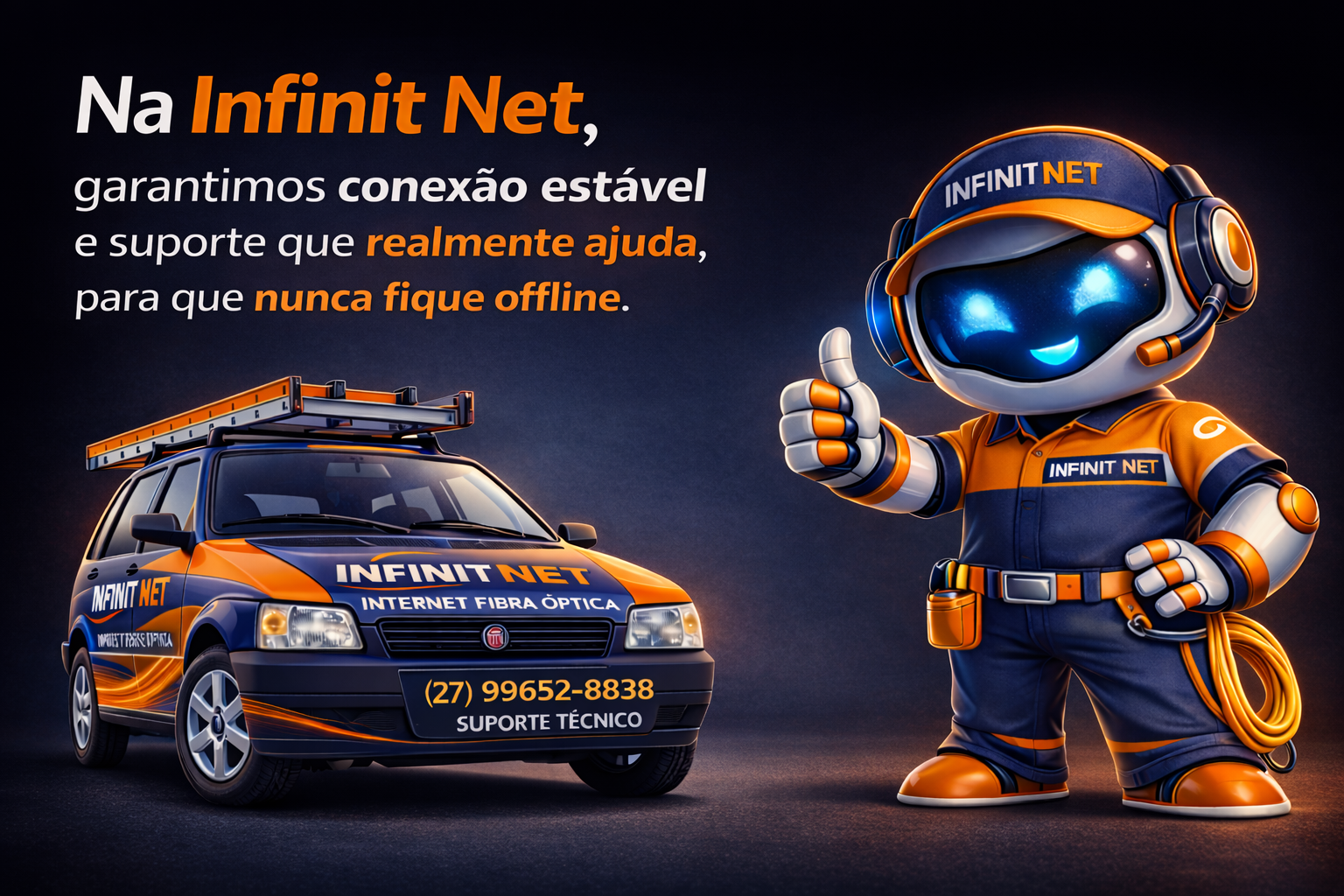 A Infinit Net conecta você ao mundo com estabilidade, velocidade e atendimento de qualidade.Nossa missão é entregar uma internet confiável, com suporte técnico próximo e soluções eficientes para residências e empresas.